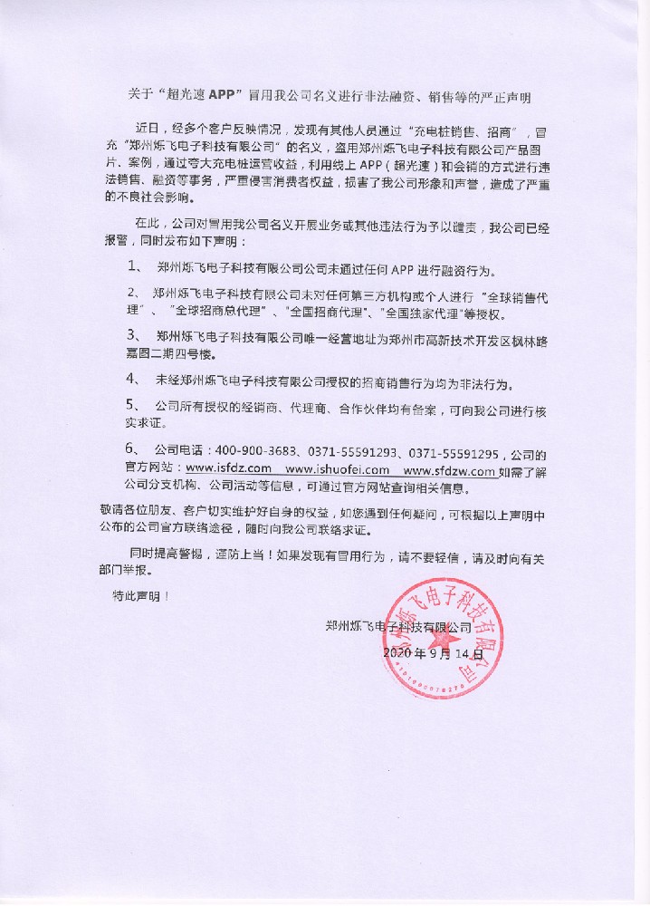 關于“超光速APP”冒用我公司名義進行非法融資、銷售等的嚴正聲明
